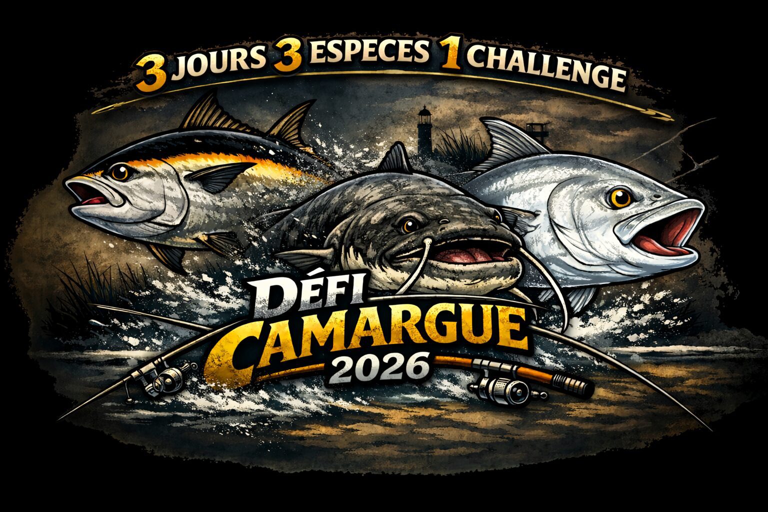 3 jours de pêche sportive pour relever un challenge unique en Camargue : capturer un silure, une liche amie et un thon, en solo ou en équipe.