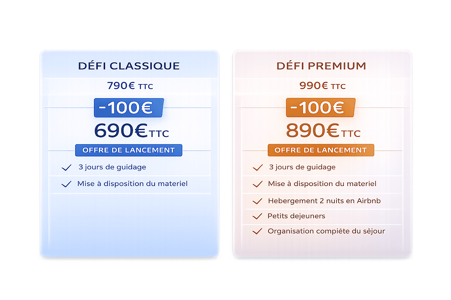 Le défi se déroule sur 3 journées encadrées par un guide professionnel.